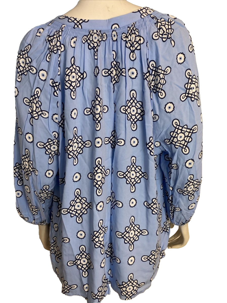 NWT Crown & Ivy Blue and White Print 3/4 Sleeve V Neck Top Size 3X