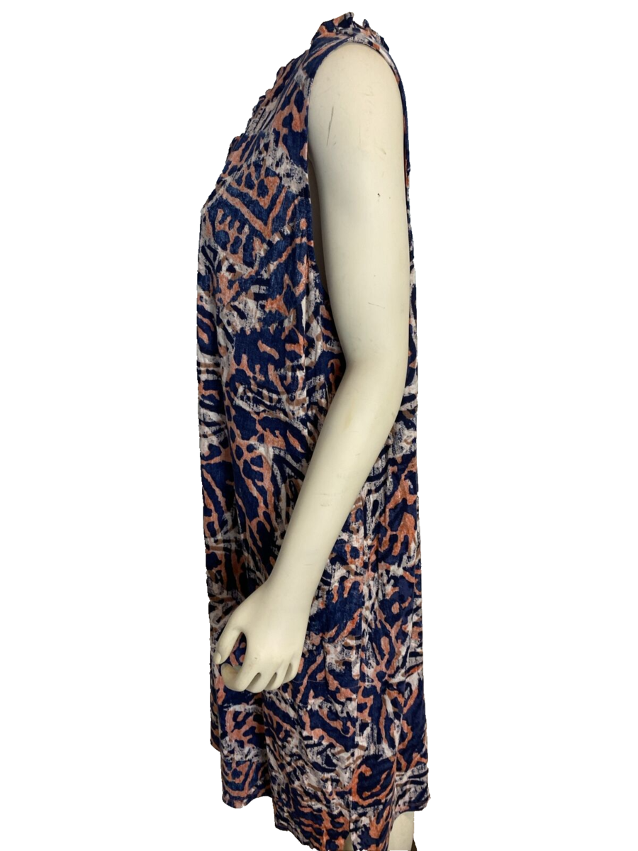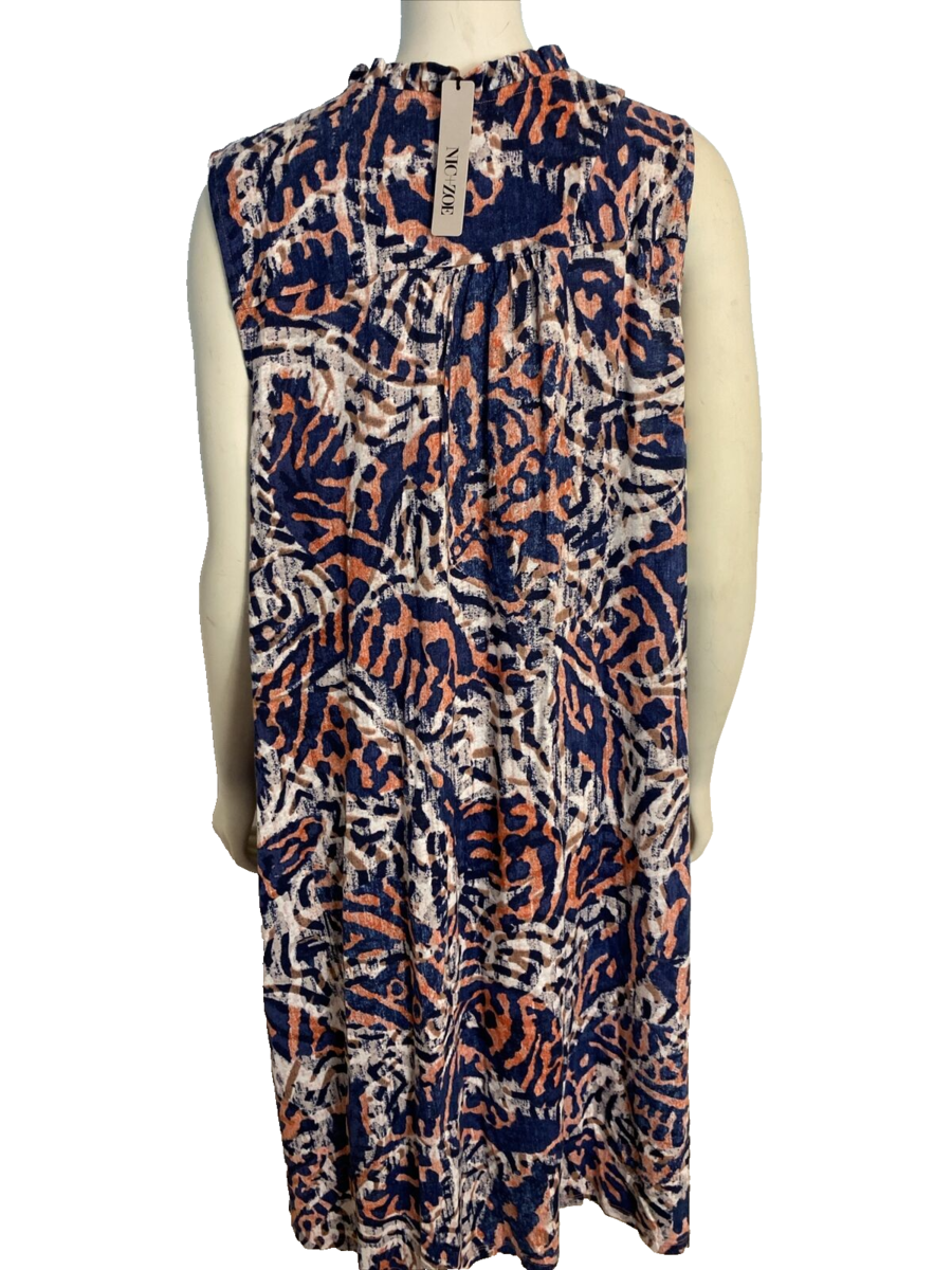 NWT Nic+Zoe Blue, Orange, White Print V Neck Sleeveless Knit A Line Dress Sz 2X