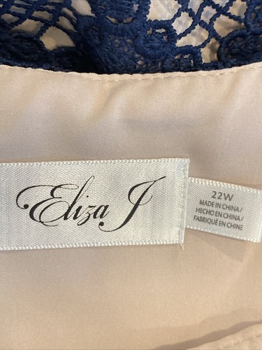 Eliza J Blue and Tan Dress Lace Overlay Short Sleeve Pencil Dress 22W