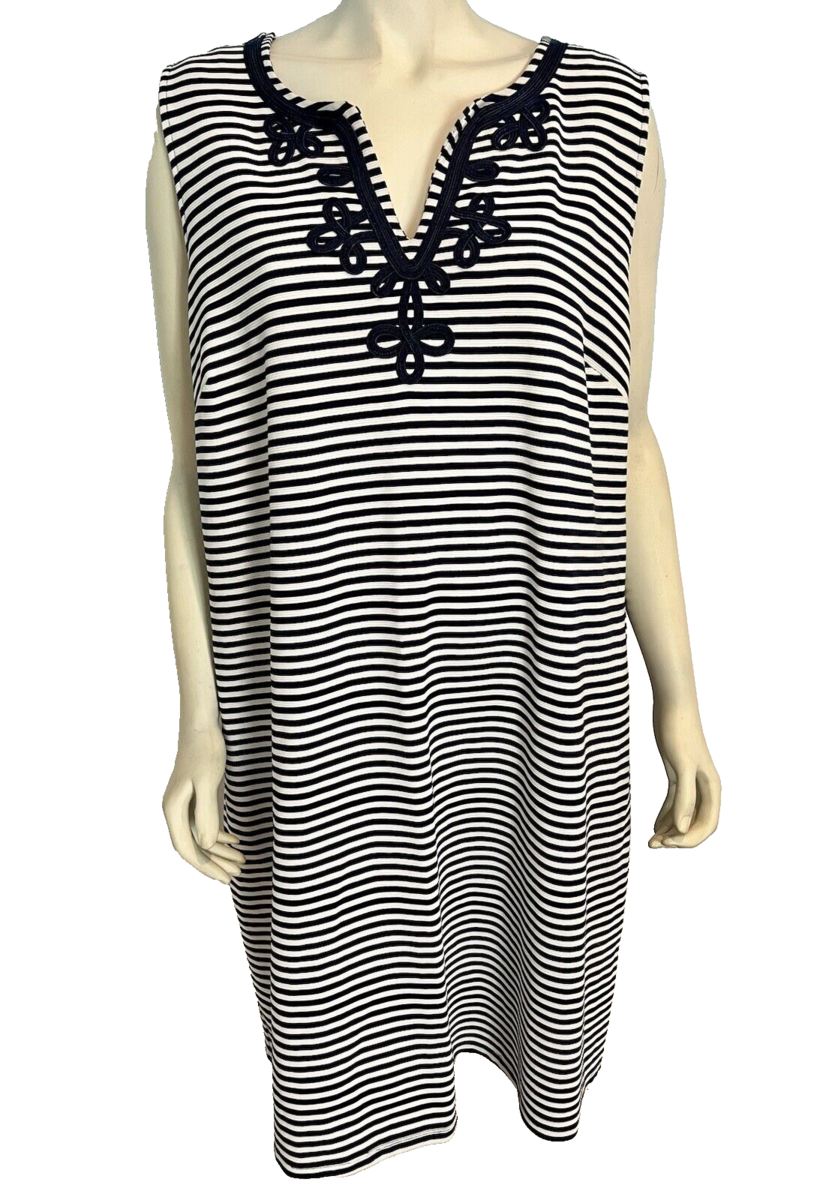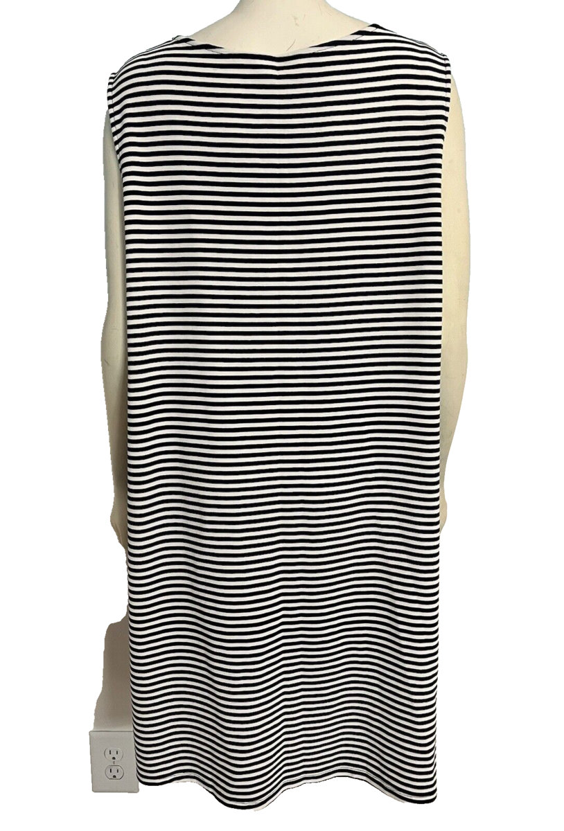 Charter Club Women's Sleeveless Striped Shift Dress Black/White 3X