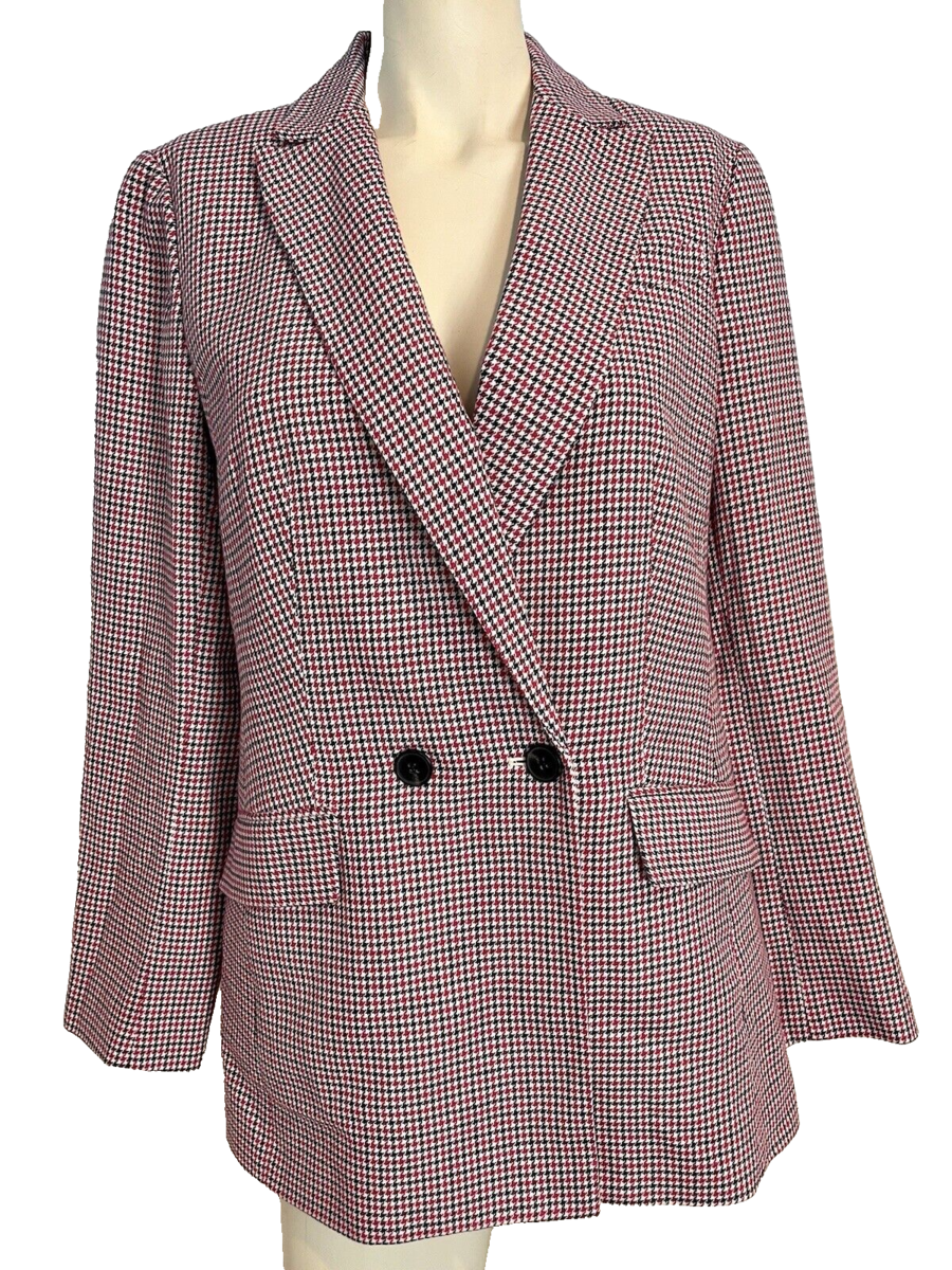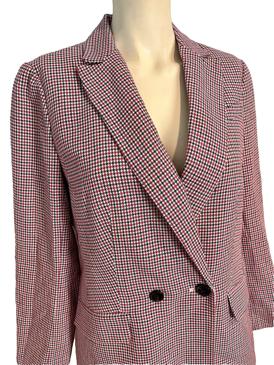 Talbots Women's Houndstooth Red/White/Black Blazer Sz 10 NWT