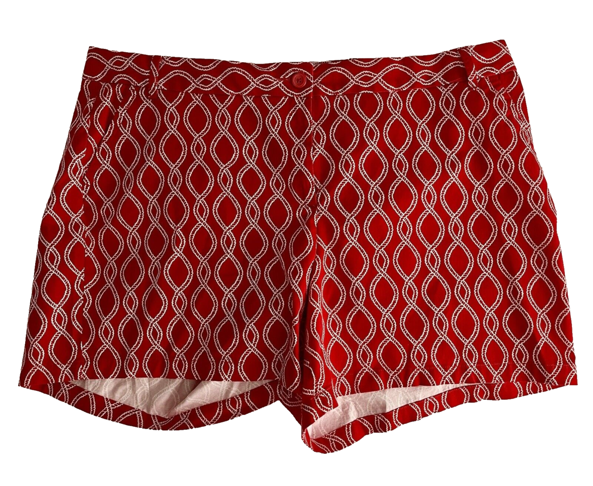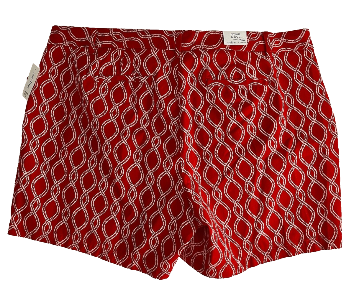 NWT Crown & Ivy Curvy Caroline Red and White Chain Flat Front Shorts Size 24W