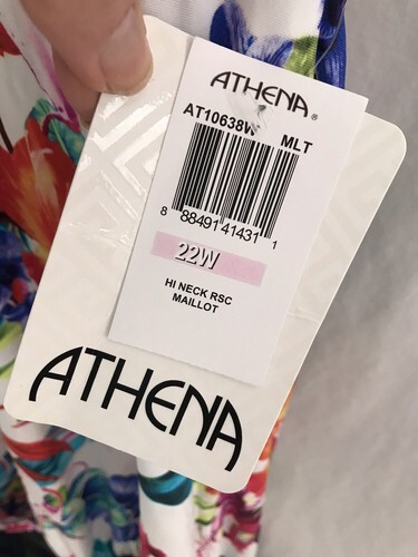 Athena Hi Neck RSC Maillot Blue Floral Print Swimsuit, Size 22W, NWT