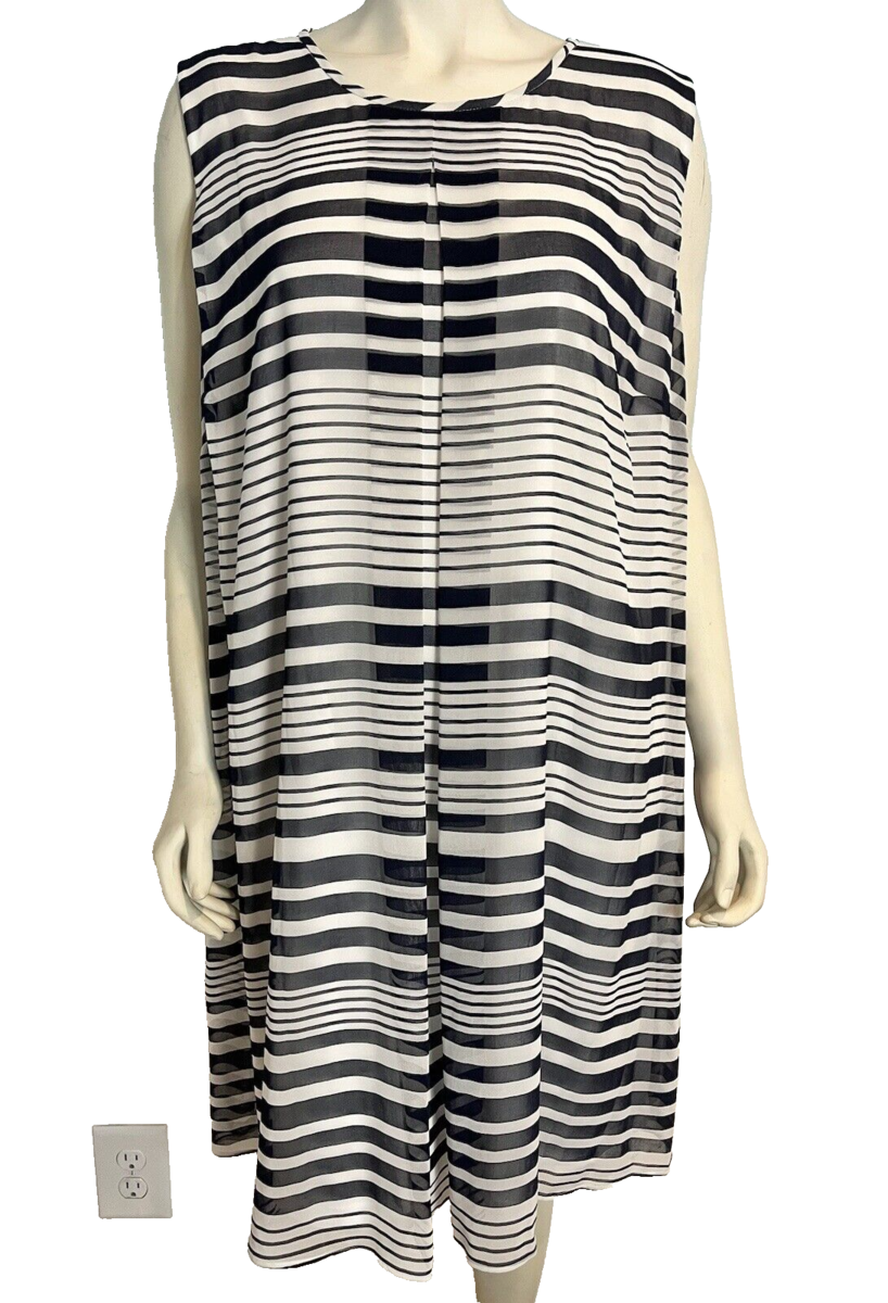 NWT Calvin Klein White with Blue Stripes Sleeveless Lined Shift Dress Size 20W