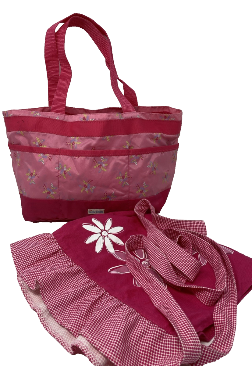 American Girl Bitty Baby Girls Carrier Diaper Bag Pink Retired and Girls' Apron