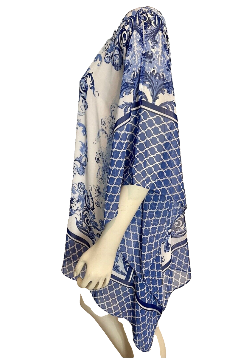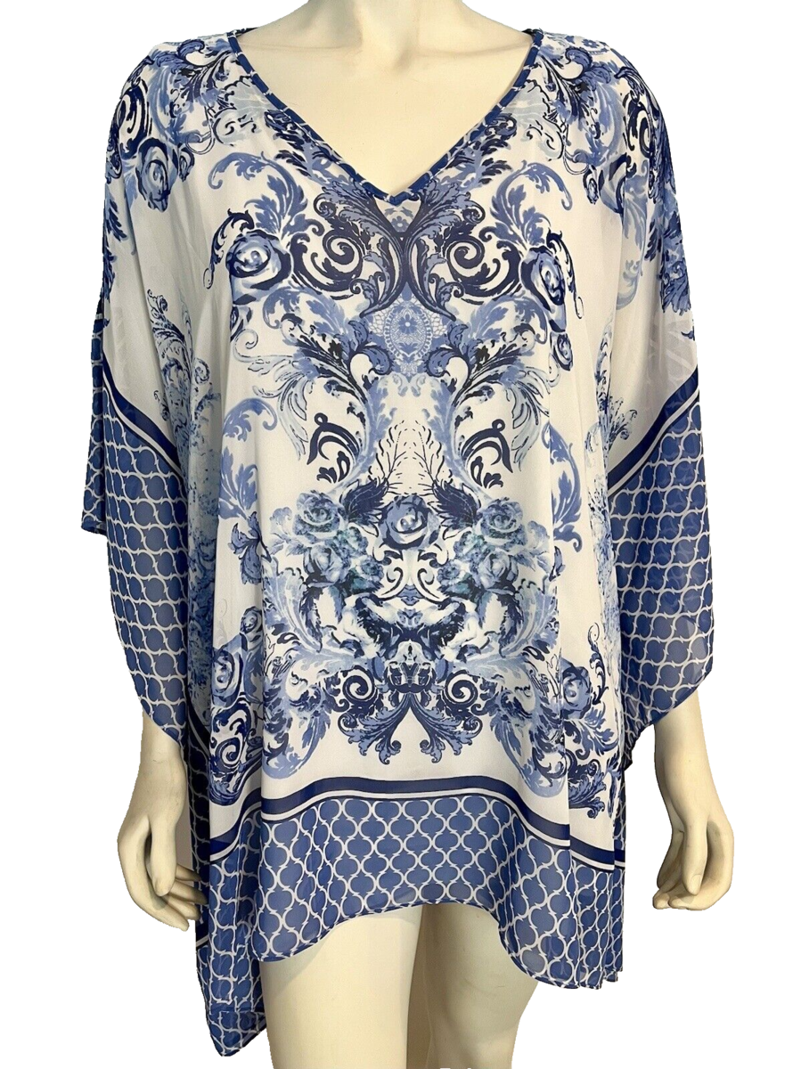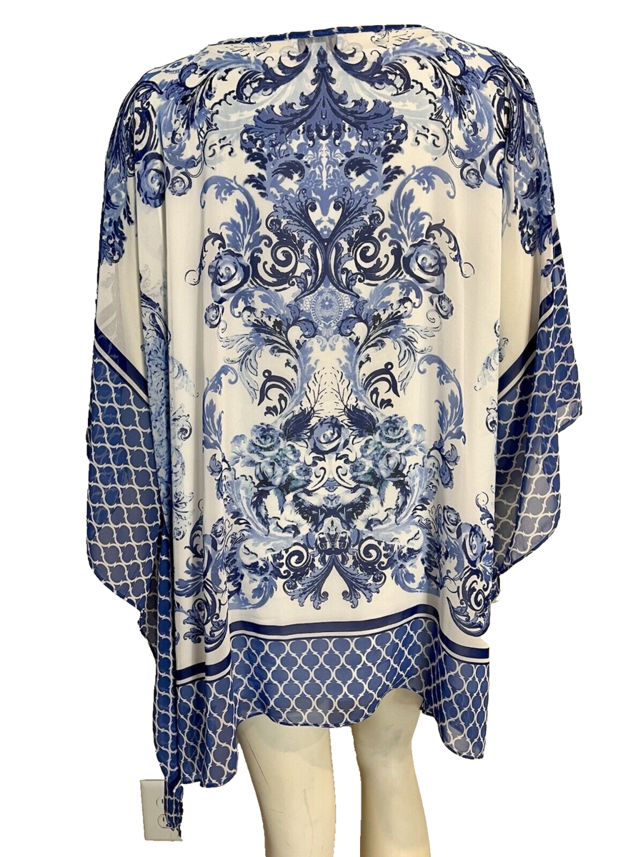 Susan Graver Women's 2-Piece Chiffon Blouse Blue/White 2X
