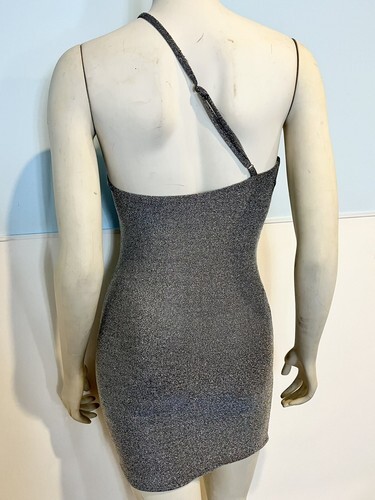 Princess Polly Silver Metallic Lined One Shoulder Spaghetti Strap Bodycon Dres 6