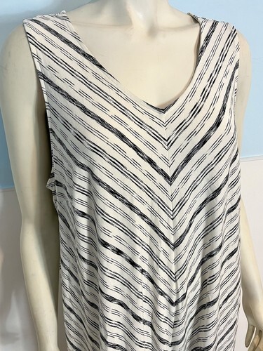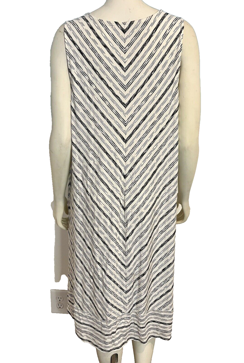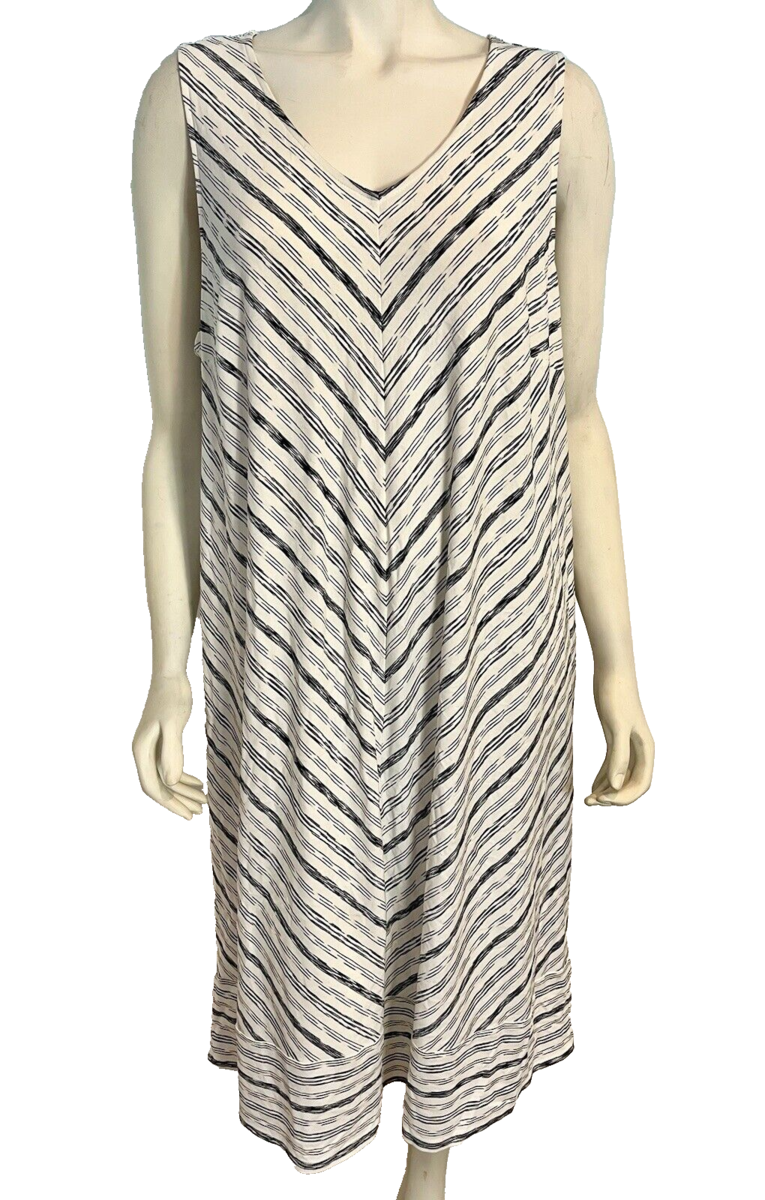 J.Jill Wear Ever Collection White Blue Stripe V Neck Sleeveless Dress 2X