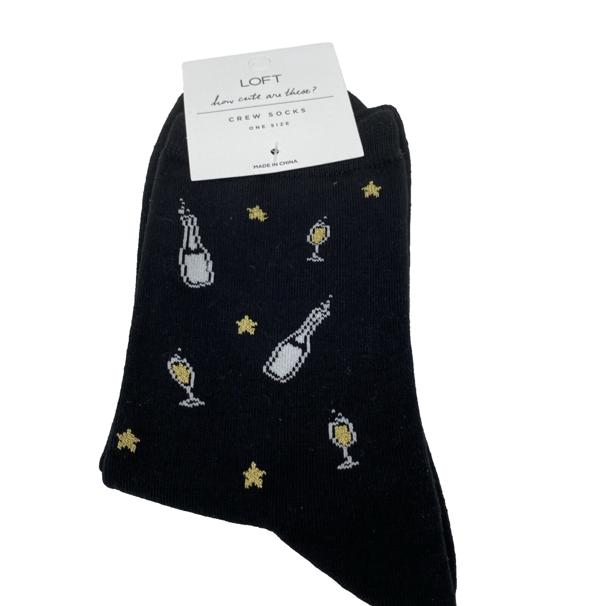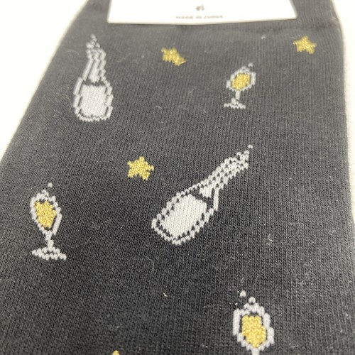 LOFT Women's How Cute Are These Crew Socks Black Champagne Bottles NEW