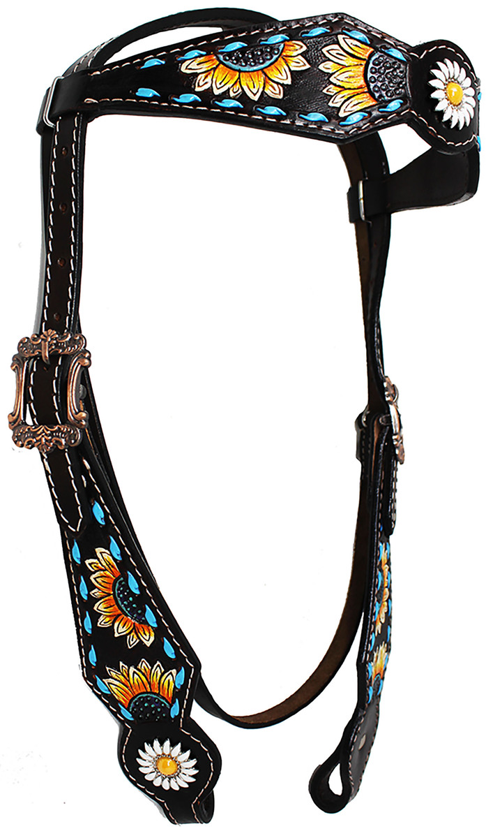 Horse Western Sunflower Leather Bridle Headstall Breast Collar Tack Set 78HR40B