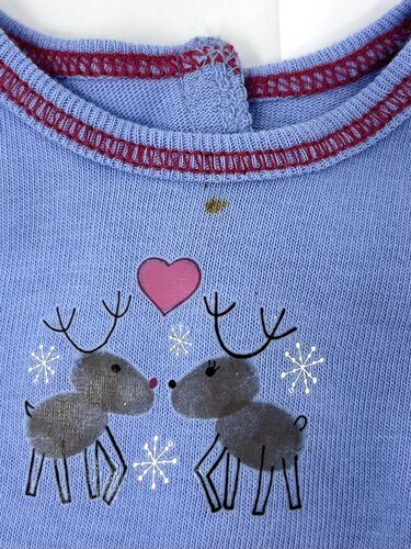 Blue Satin Pants with Brown Reindeer and Pink Hearts