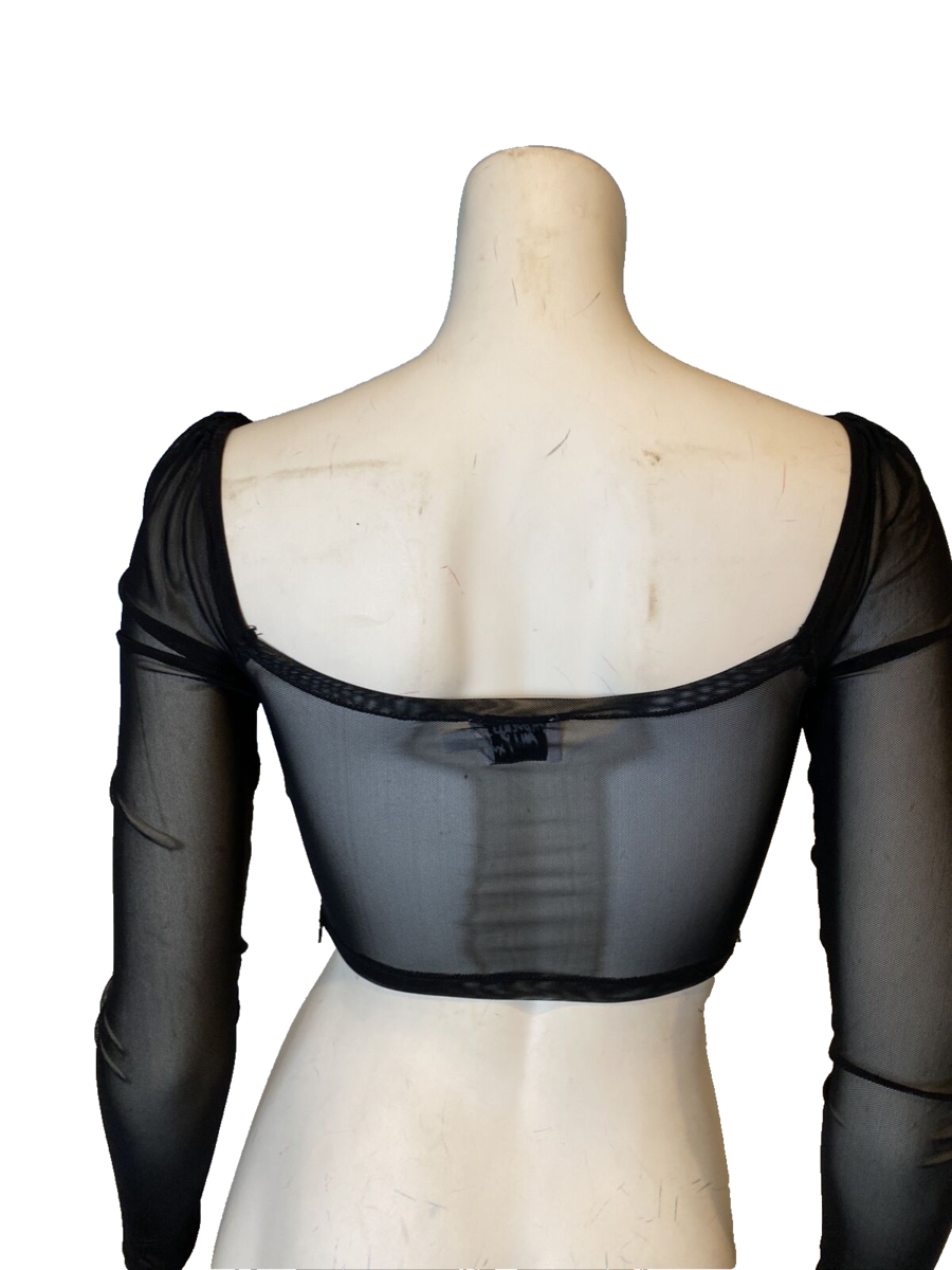 Princess Polly Black Cropped Top Square Neck Sheer Long Sleeves Size 4