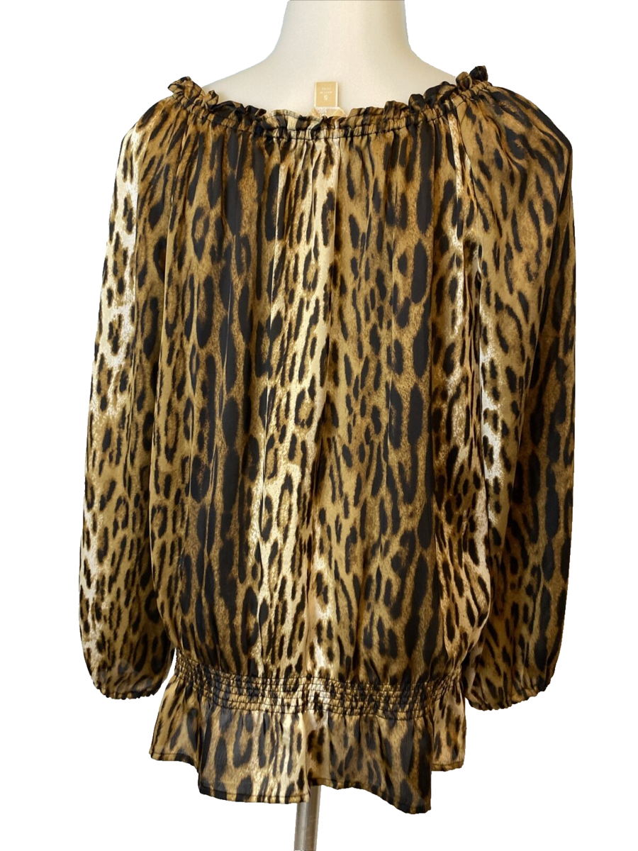 Michael Kors Black and Brown Animal Print Long Sleeve Peasant Top Size S