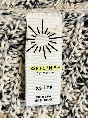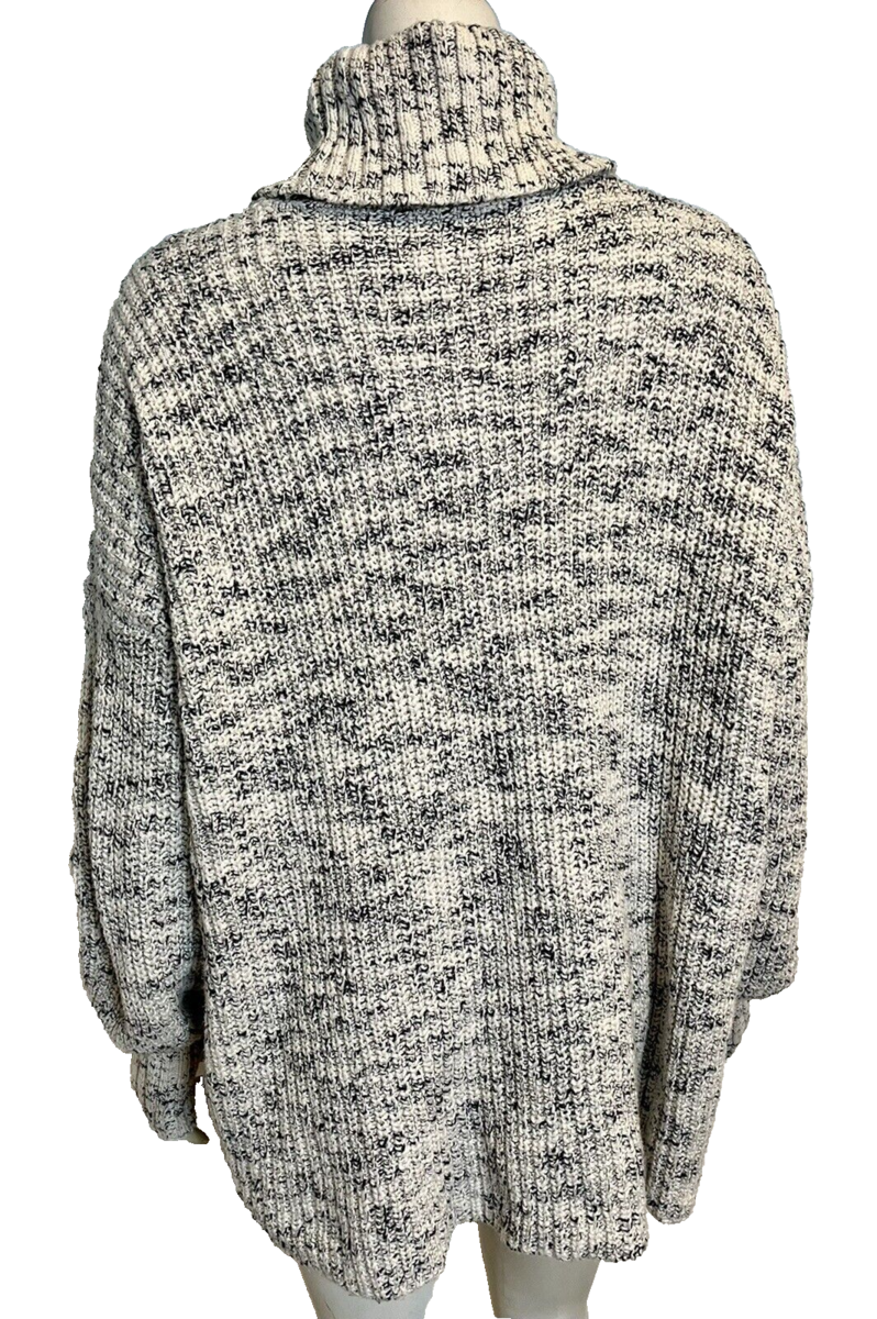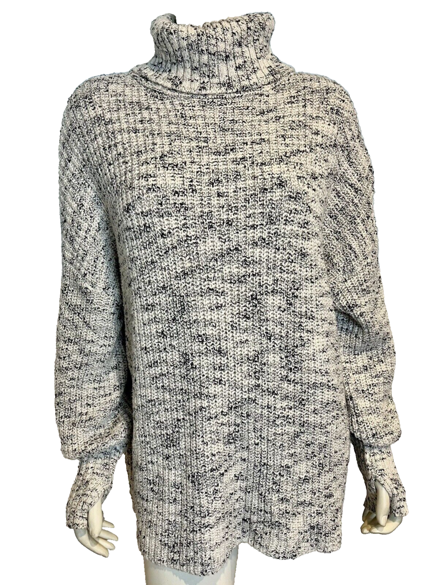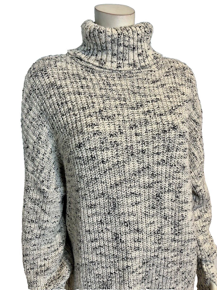 Aerie Off White and Blue Long Sleeve Turtleneck Cotton Sweater