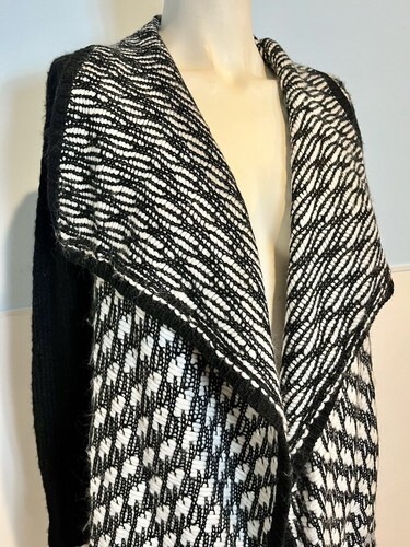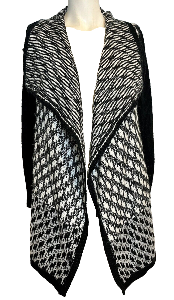 Ruby Moon Black and White Wide Collar Long Sleeve Open Cardigan Size XS