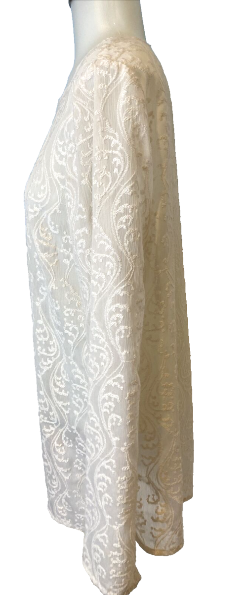 Loft Off White Embroidered Sheer Boat Neck Long Sleeve Top Size M