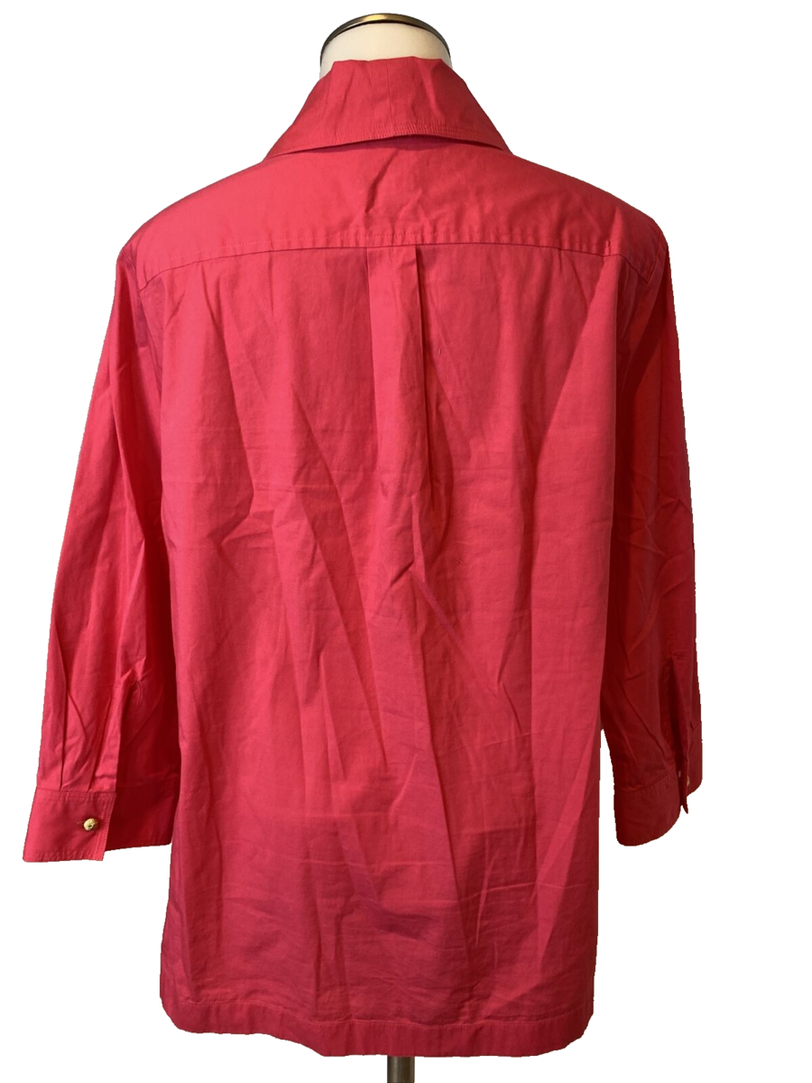 Talbots Hot Pink V Neck 3/4 Sleeve Pullover Blouse Size 10