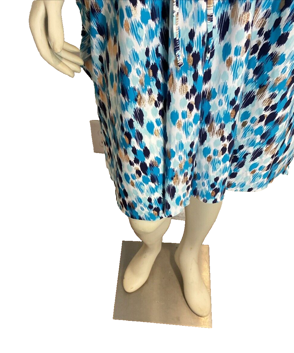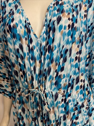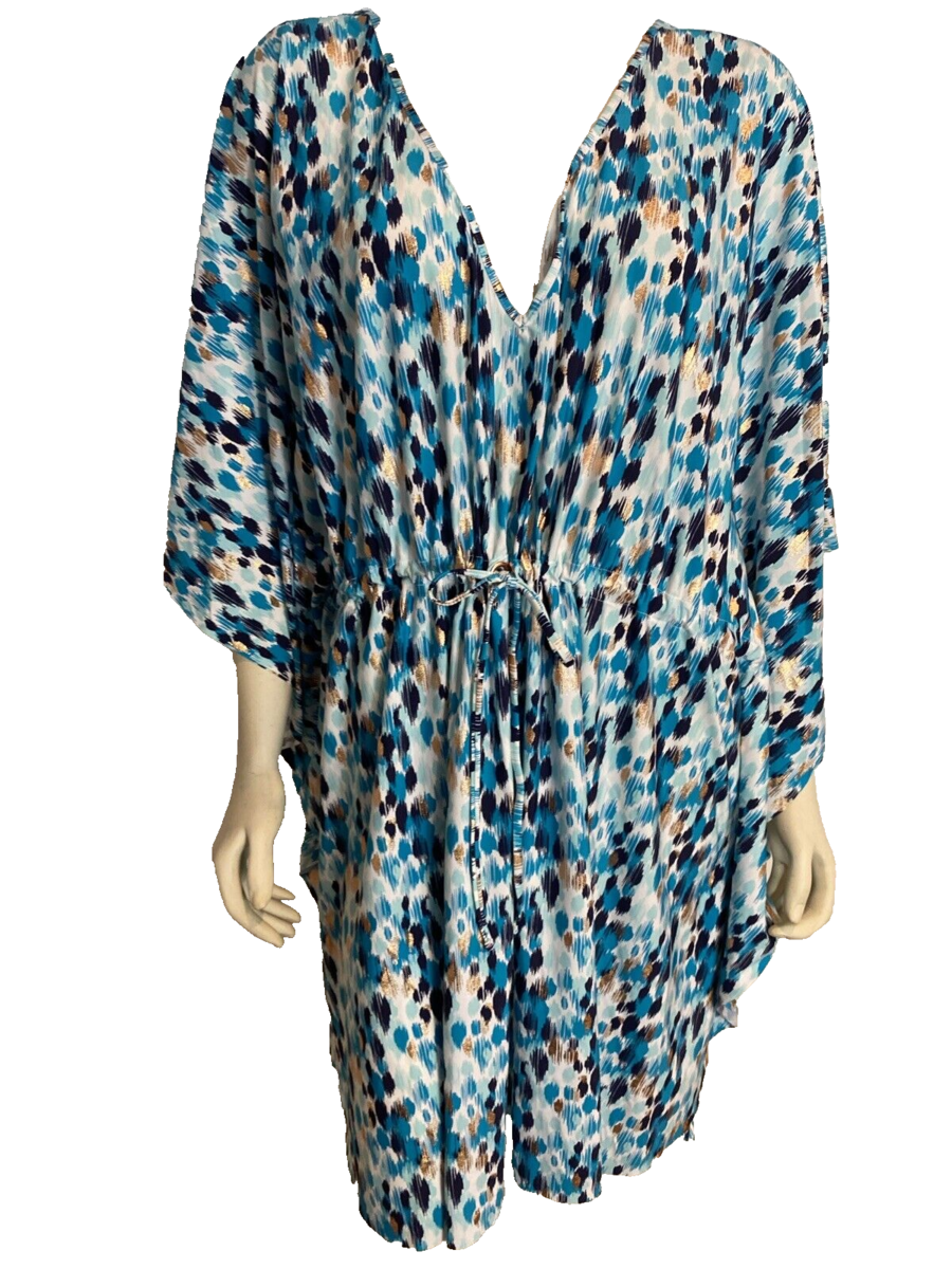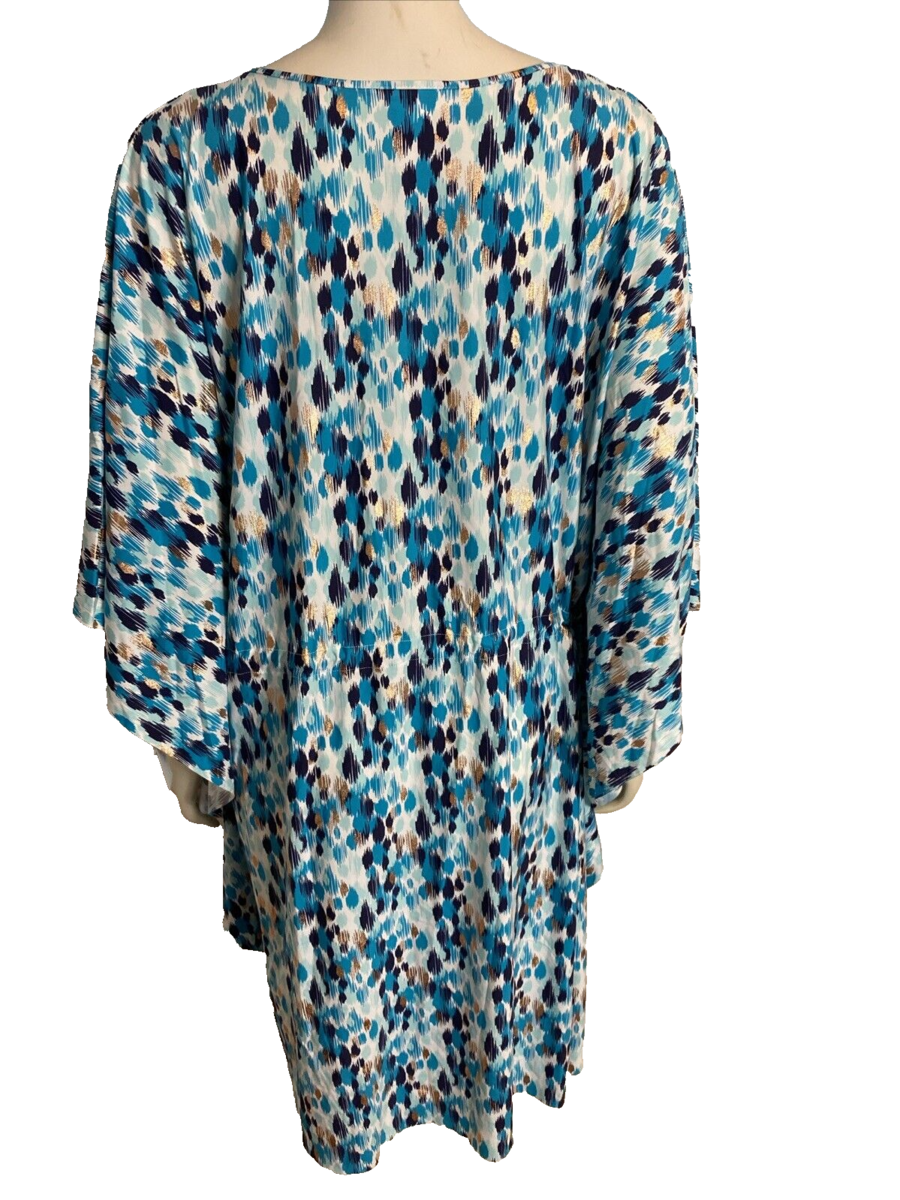 NWT La Blanca White, Blue, Bronze Print V Neck Short Coverup Size 3X