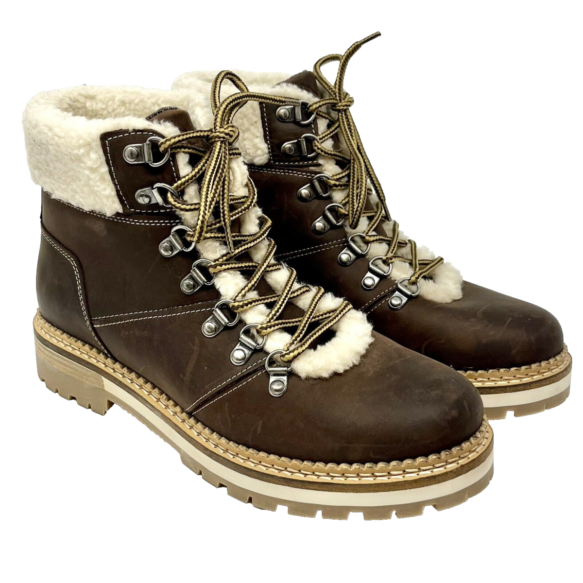 Alpine Design Women's Ortholite Lace Up Fur Lined Leather Boots Brown 9 NWOB