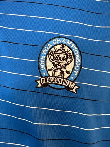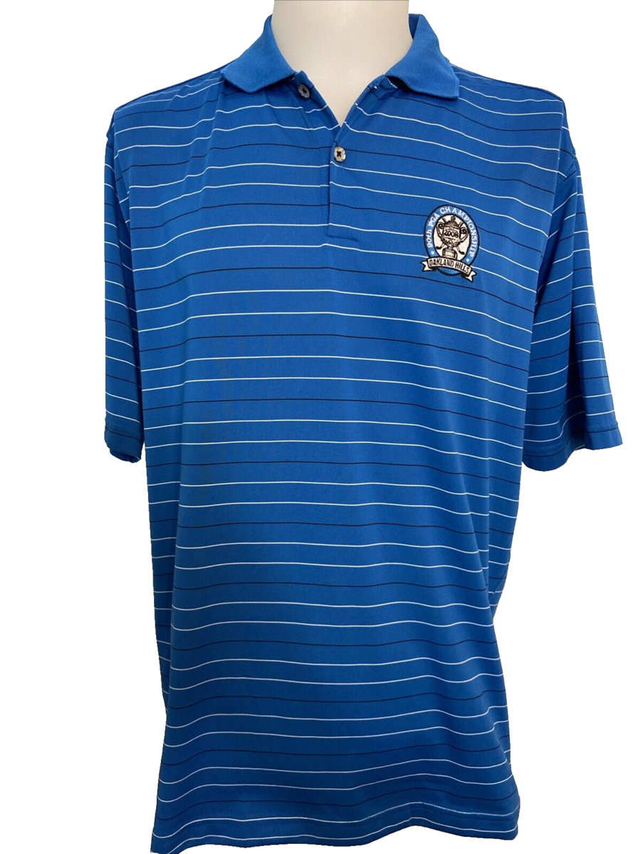 Antigua Men's Golf Shirt Blue Striped 90th PGA Championship Oakland Hills L