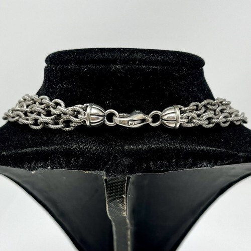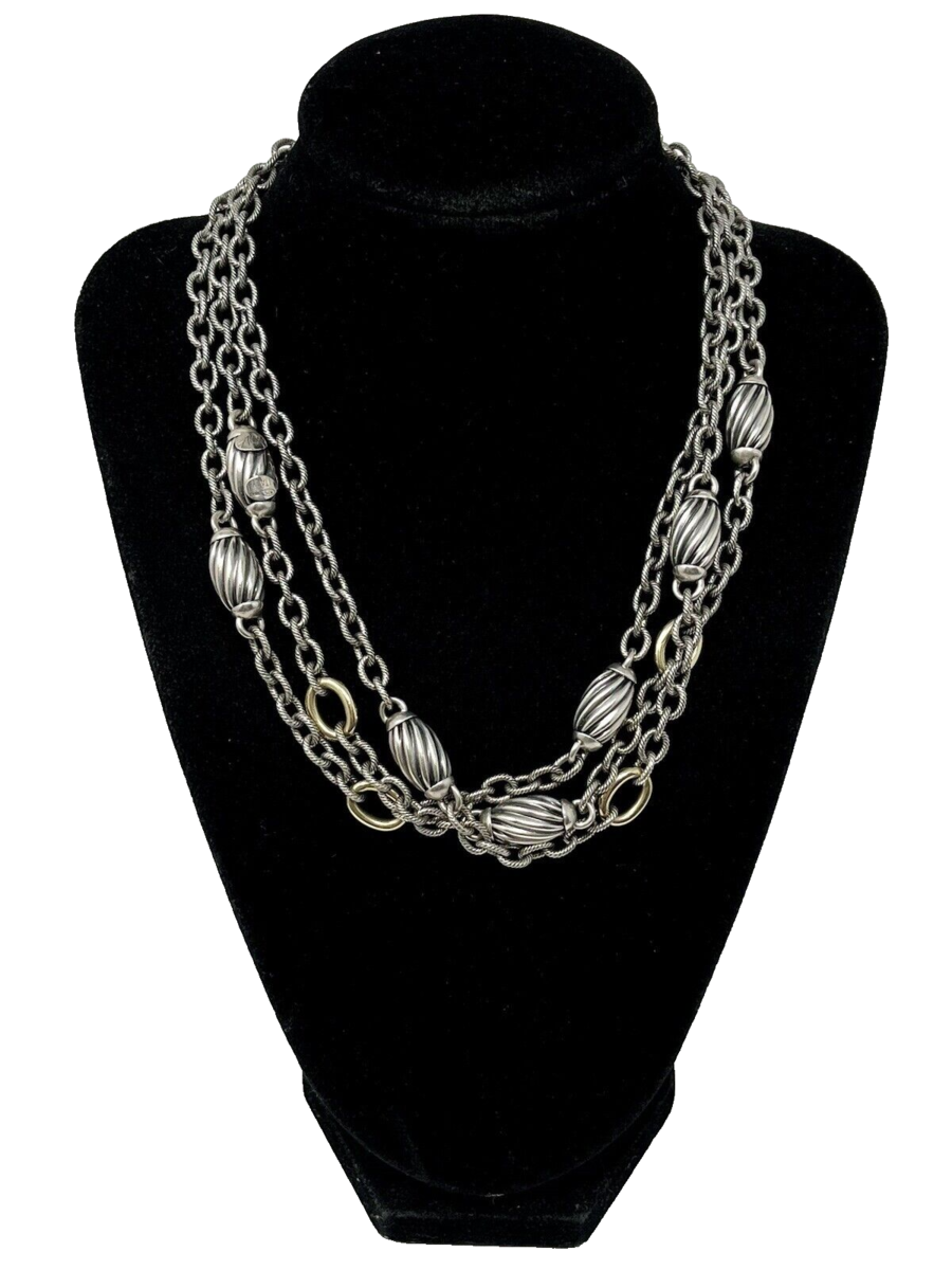 Alisa 3 Strand Sterling Twisted Cable Links & Beads & 18k Gold Ovals Necklace