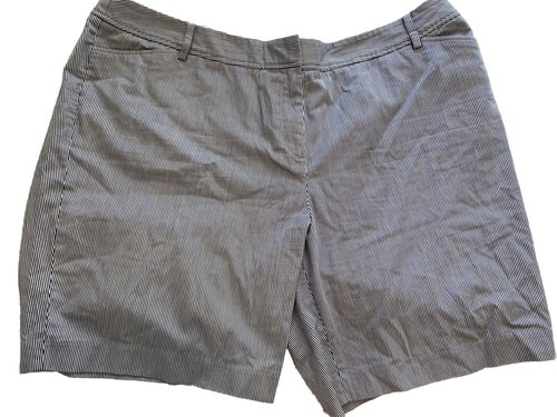 Talbots Woman Petite Perfect Short Blue White Striped Flat Front Size 22WP