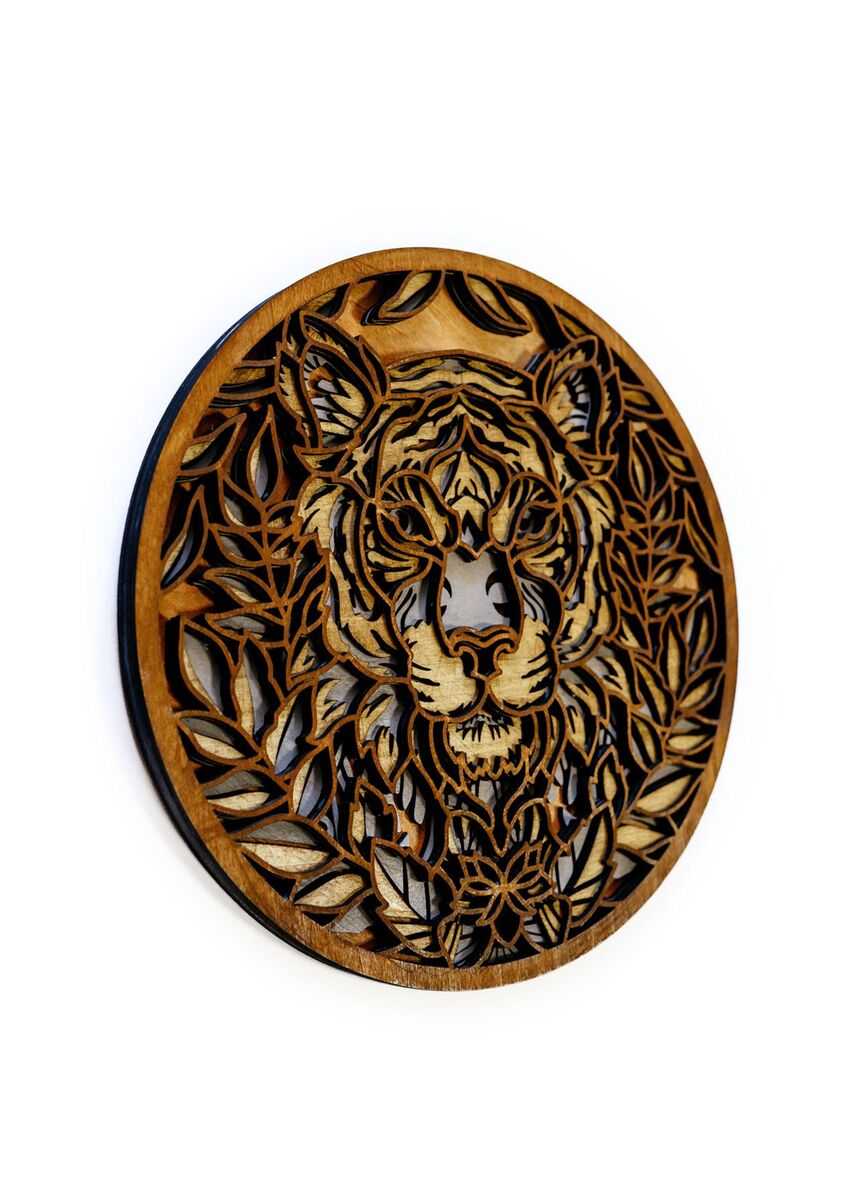 Lion Mandala Wood Wall Art – 4 Layer Round Wildlife Decor