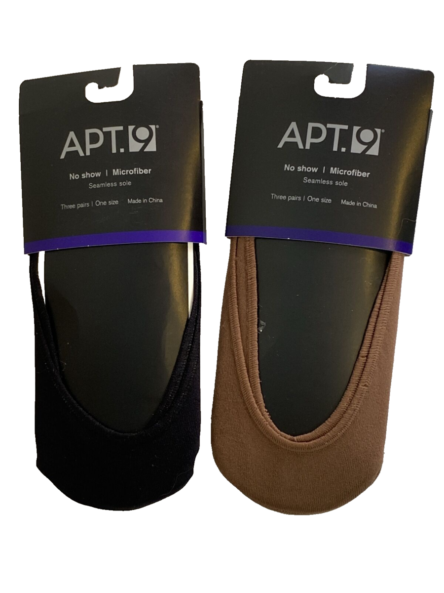 Apt. 9 Women's No Show Microfiber Socks 6 Pair Black & Brown NEW