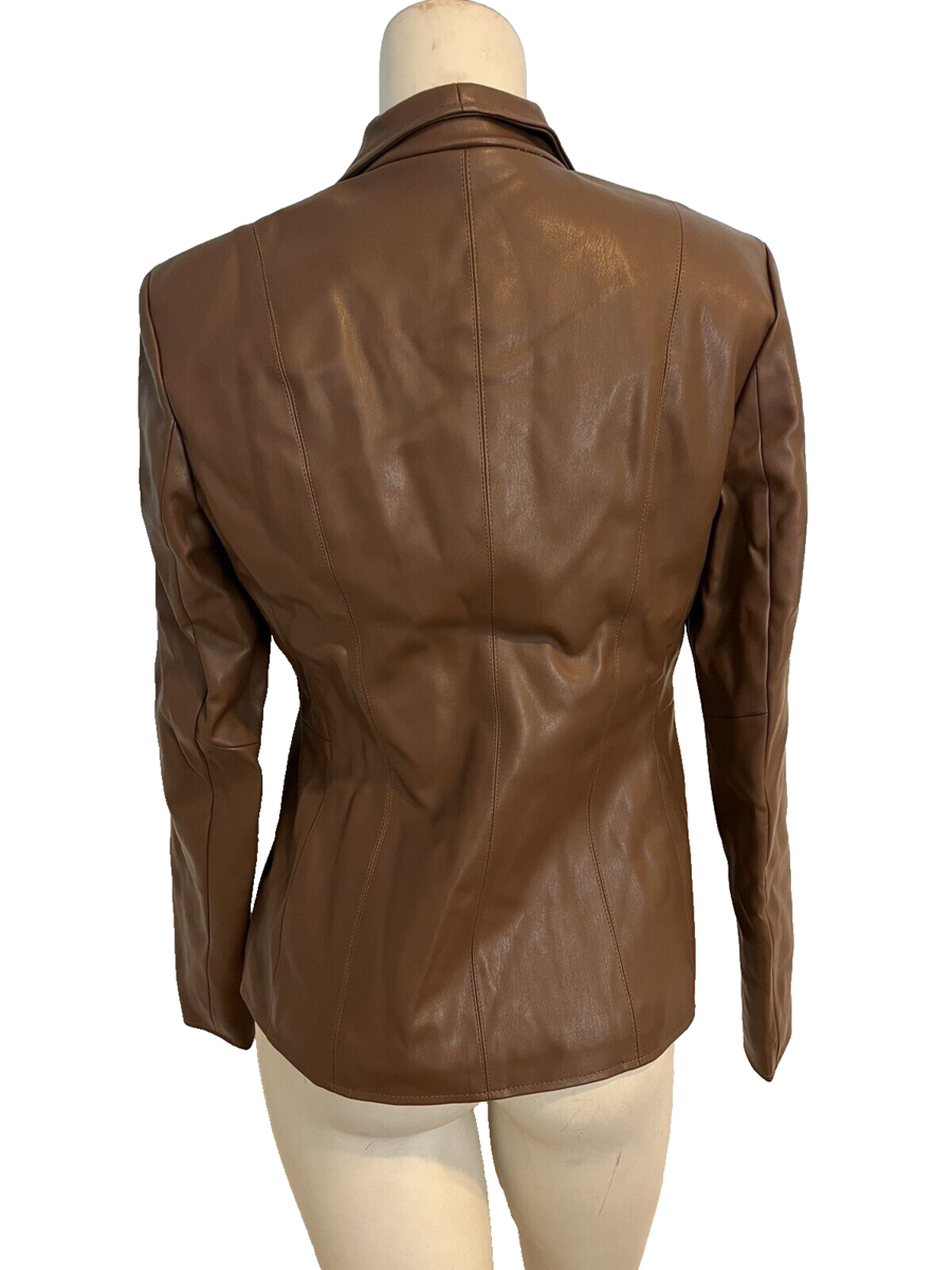 Cole Haan Signature Brown Leather Jacket Front Zip Lined Size XS
