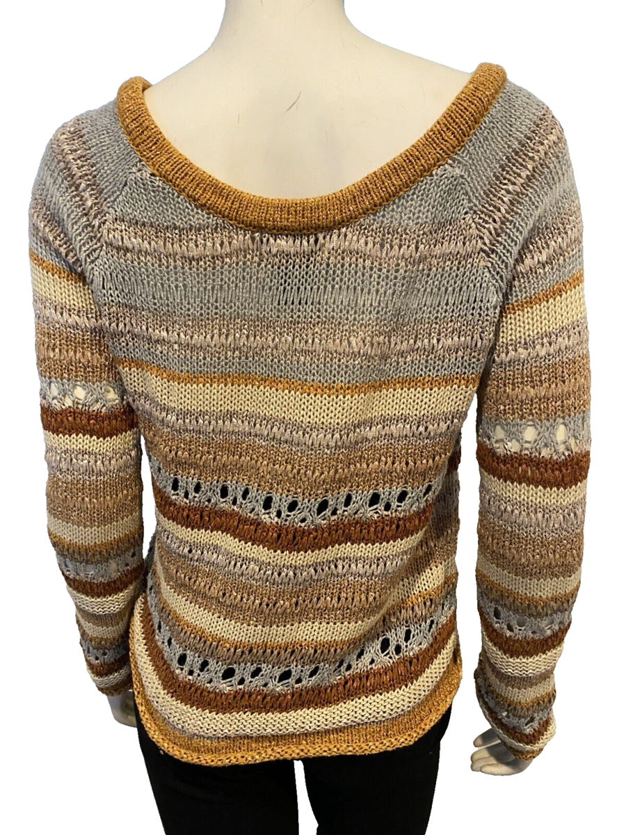 Torn by Ronny Kobo Multicolor Striped Open Knit Sweater, Women's Size M