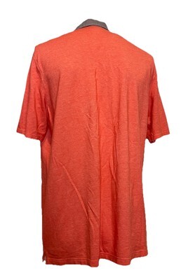 Lands' End Orange Short Sleeve Button Down Polo Shirt w Checked Collared Size XL