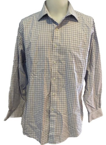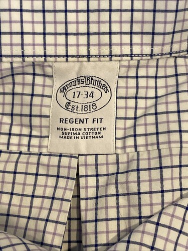Brooks Brothers Regent Fit White, Lavender Checked Shirt Size 17/34 Non Iron