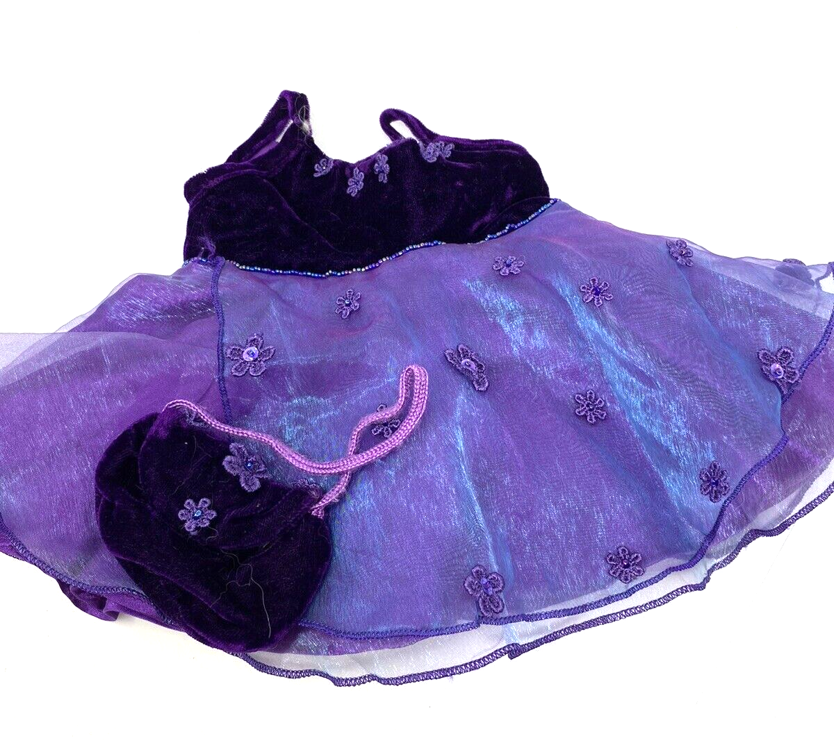 Build-A-Bear Purple Velvet and Iridescent Taffeta Dress & Matching Purse