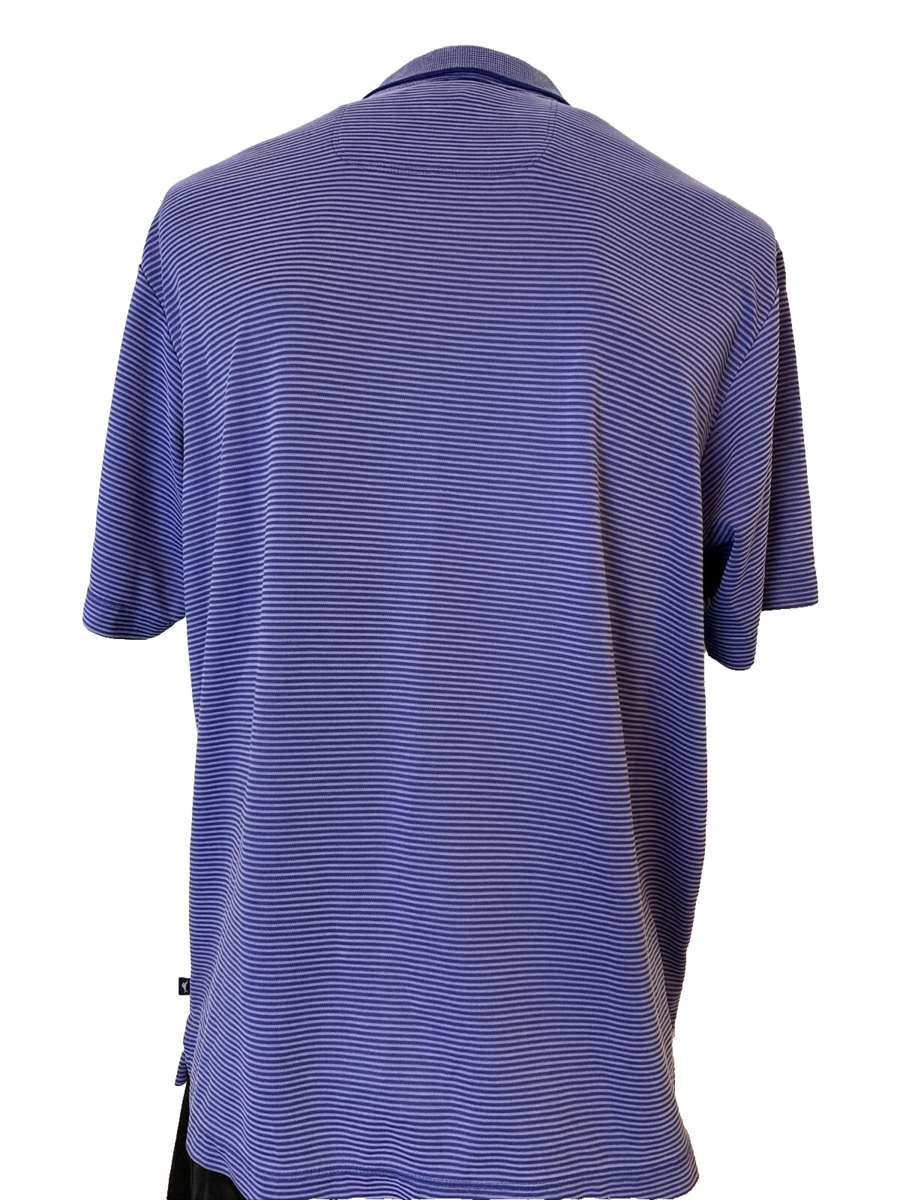 Tommy Bahama Navy and Blue Striped Short Sleeve Polo Shirt Size L