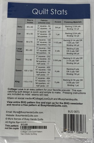 Busy Hands Quilts Cottage Love Quilt Kit NEW and similar items