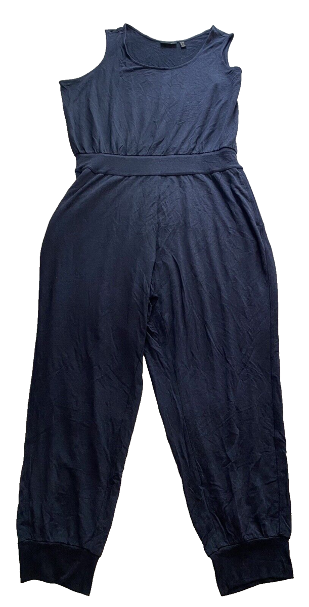 Susan Graver Weekend Navy Blue Scoop Neck Sleeveless Jumpsuit Size 2XP
