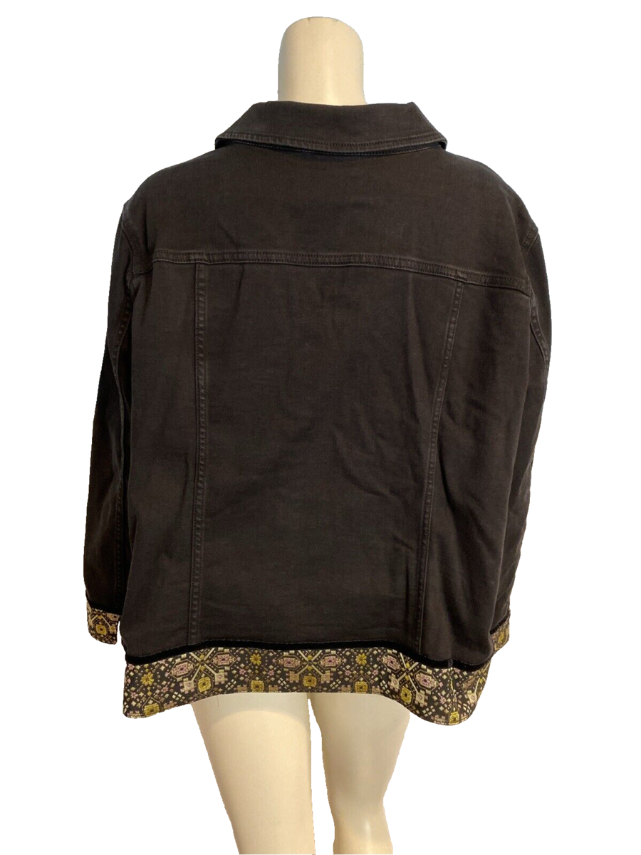 Susan Graver Jeans Black Denim Jacket with Ribbon Cuff Size 2X