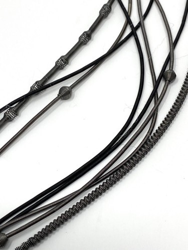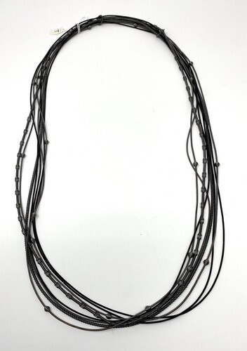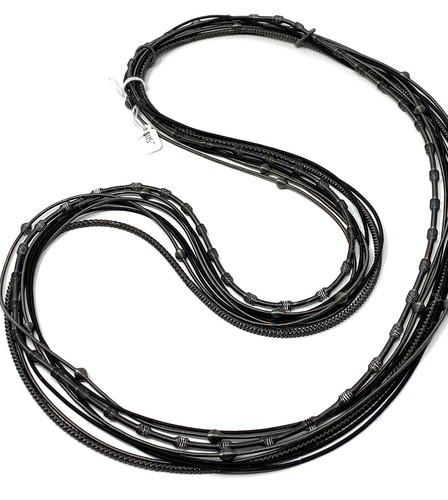 Handmade 8 Strand Spring Infinity Necklace, Black and Silver, 36" New