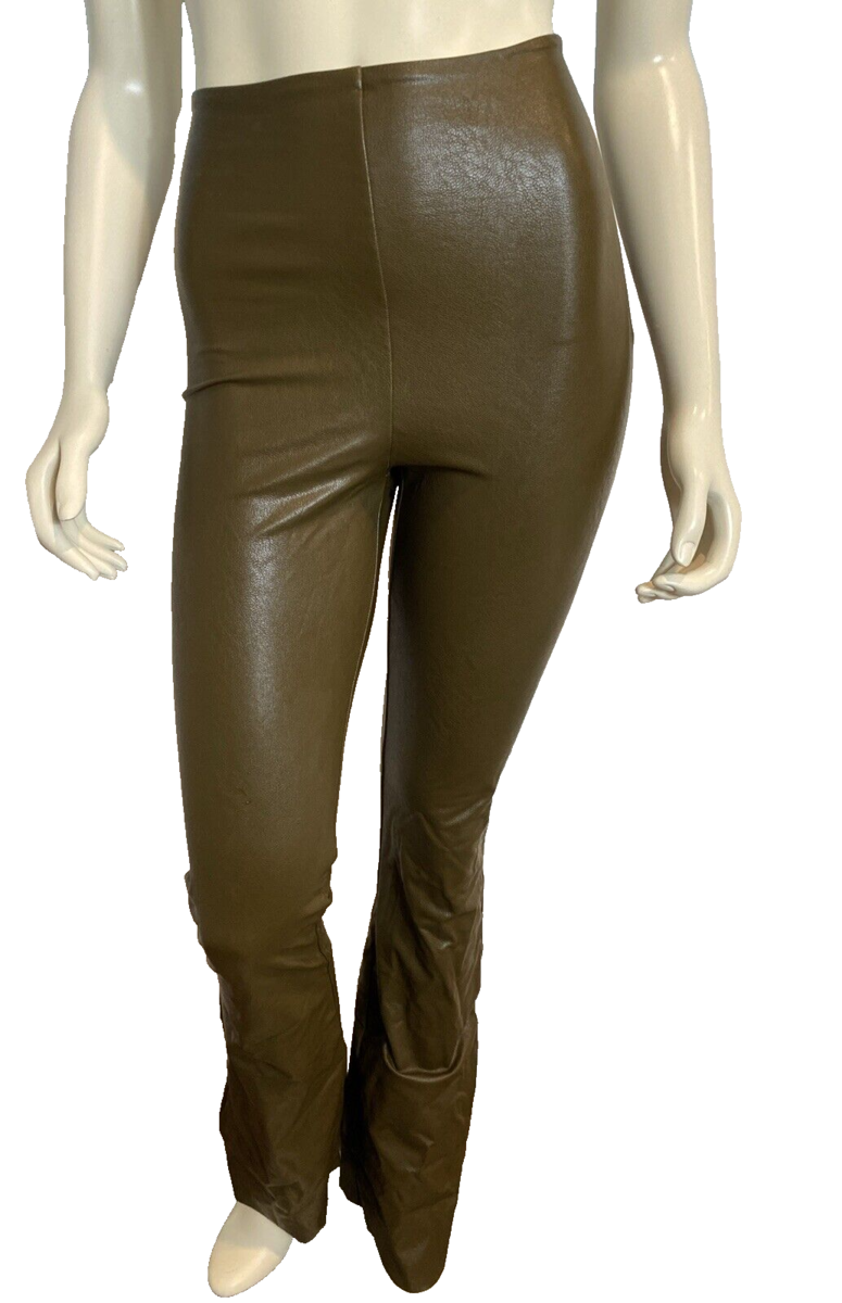Commando Brown Faux Leather Flat Front Pull on Bell Bottom Pants Size M