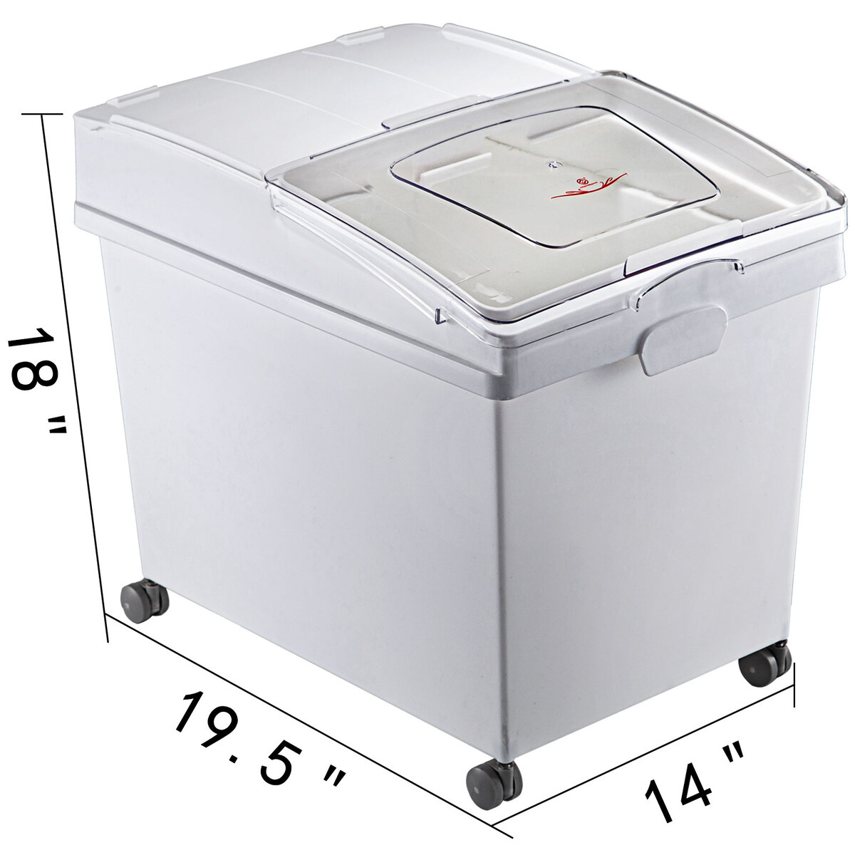 Extra-large Space Saver: Maximize your storage with this rice storage container! Depending on the size and density of your dry goods, it can hold approximately 70 pounds of rice or 35 pounds of pet food. Note: The capacity will vary depending on your dry food's size, shape, and density.