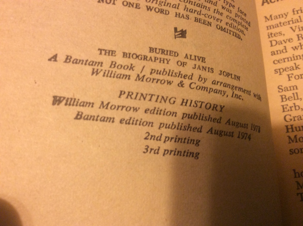 JANIS JOPLIN BURIED ALIVE by MYRA FRIEDMAN - Softcover - 1974 THIRD PRINTING