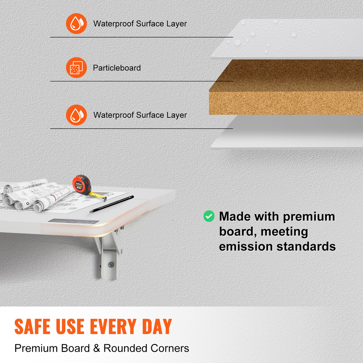 Scratch-Resistant Design: Crafted from premium materials, this wall desk meets comprehensive environmental emission standards. Its rounded corner design reduces potential risks from collisions, enhancing security for you and your family.