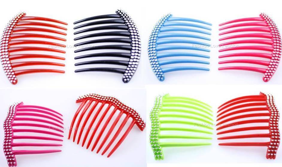 2 Pieces French Twist Hair Combs Multi-Colored With Clear Fake Rhinestone Accessories