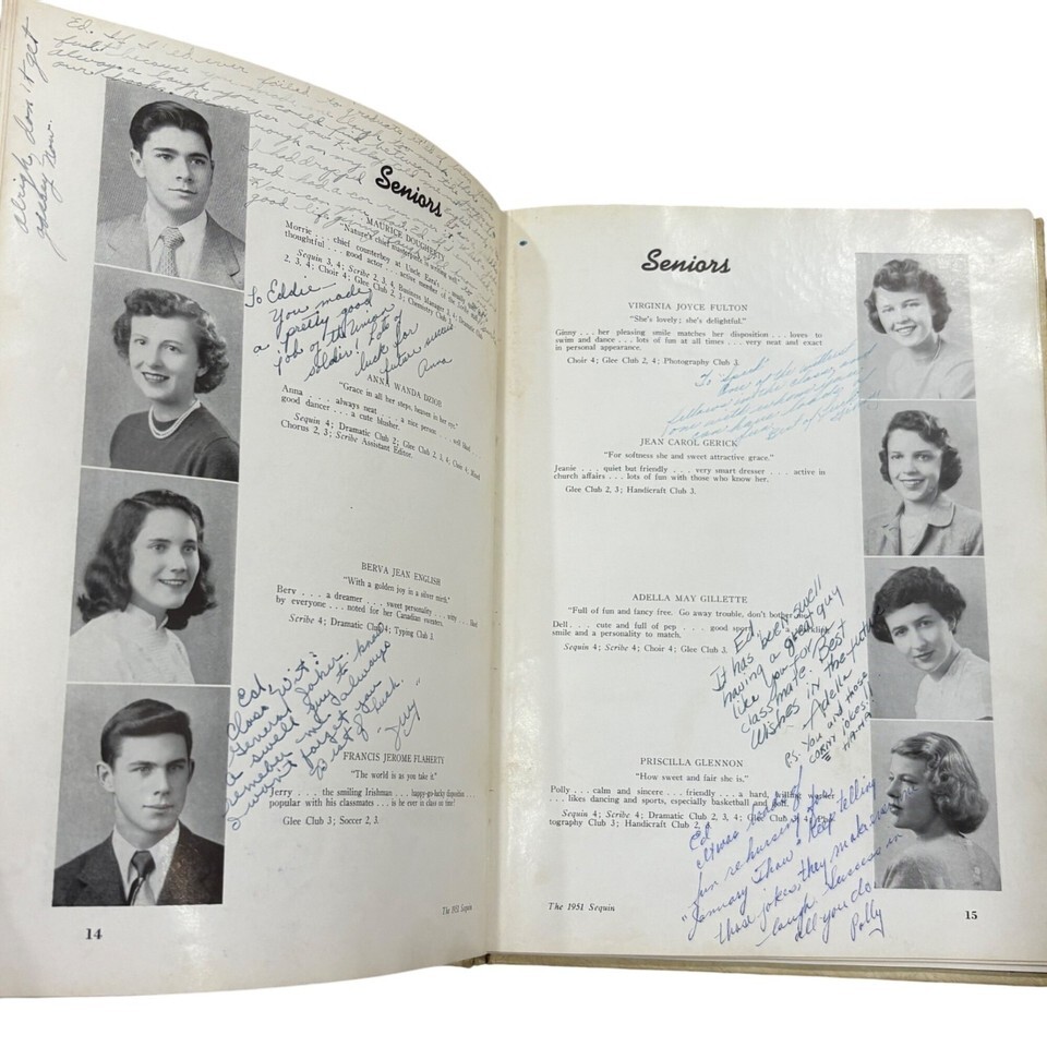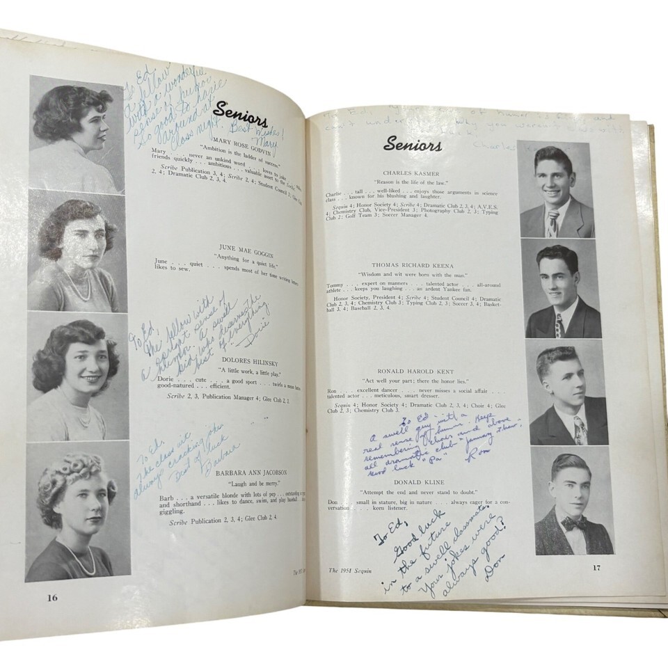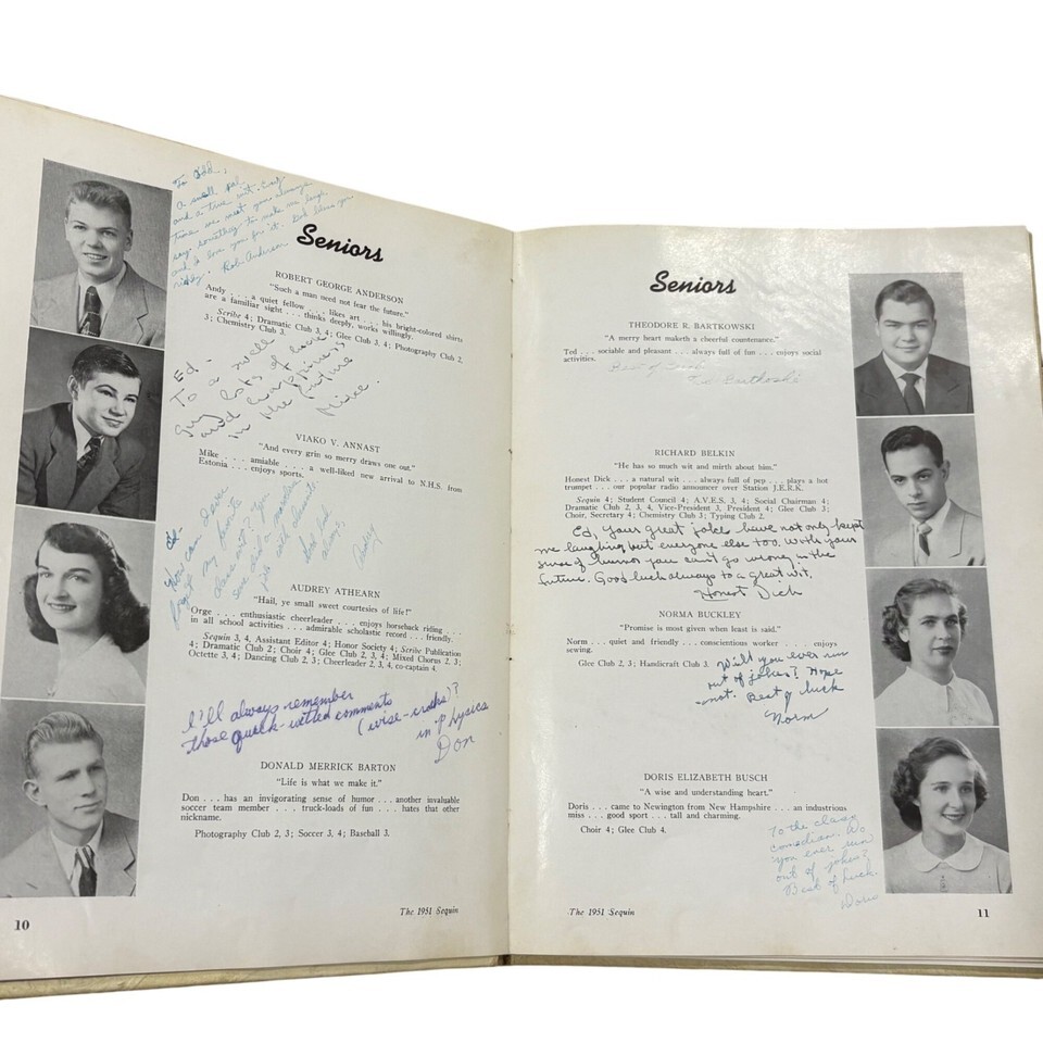 This 1951 yearbook from Newington High School features student portraits, signatures, and memories. A nostalgic piece for alumni and collectors.