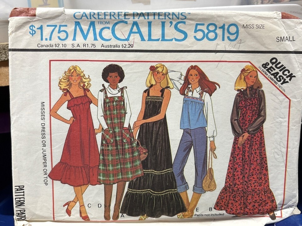 McCall's 5819 Misses Dress Jumper or Top Vintage Sewing Pattern 70s