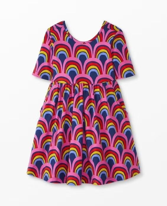 Hanna Andersson Elbow Print Hello Rainbow Dress 3T Pink & Navy Cotton Blend