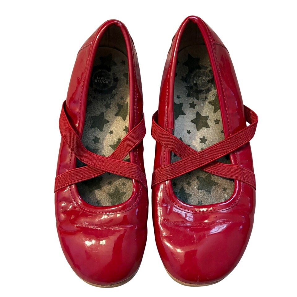 Live & Luca Girls Red Patent Mary Jane Shoes With Elastic Straps Size 1 Youth