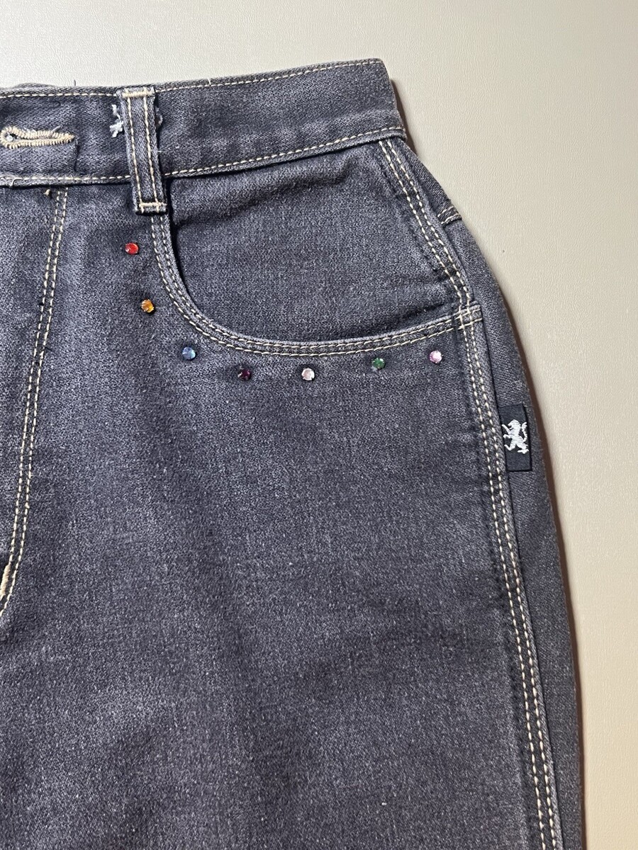 Braxton Stretch Jeans Women’s 9 Black With Tan Stitching And Jeweled Pockets