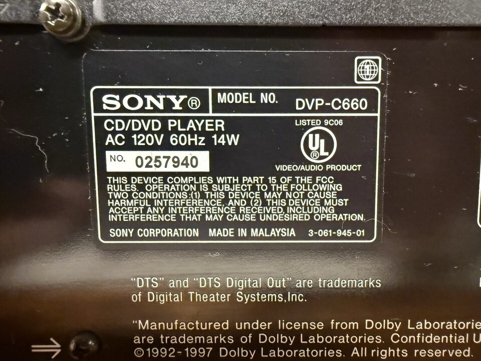 Sony DVP-C660 5 Disc DVD/CD Carousel Changer Player + Remote | Tested