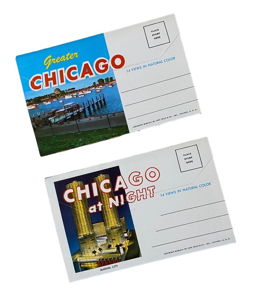 Chicago at Night Greater Chicago Postcards Books Lot Of 2 1963 28 Views Total
